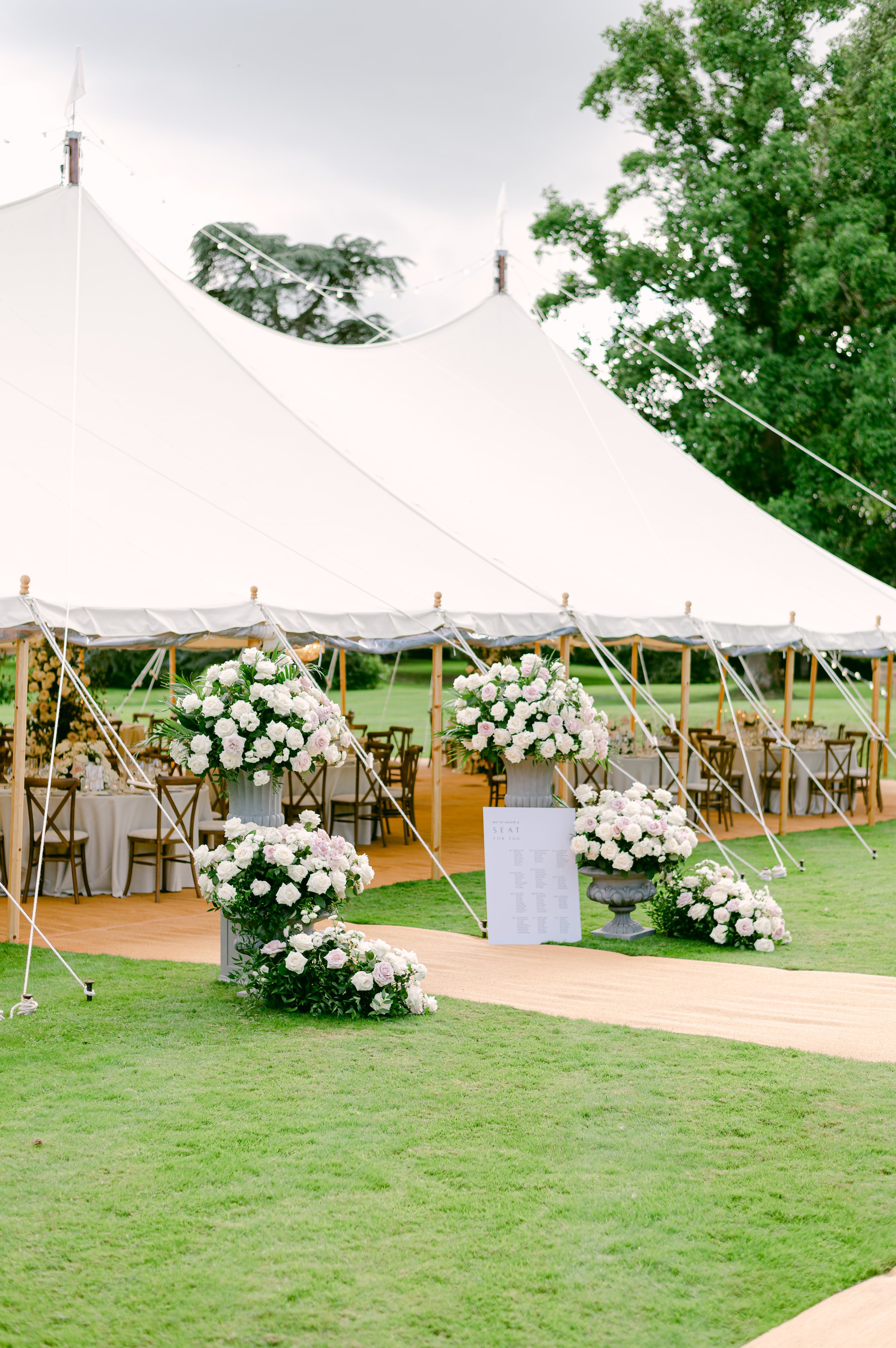 Lovingly handcrafted in England, each tent is made using traditional materials and time-honoured techniques to ensure unmatched quality and charm. From the finest stitching to the beautifully finished wooden poles, every detail is created with care and integrity by local artisans, so your celebration begins with something truly special.